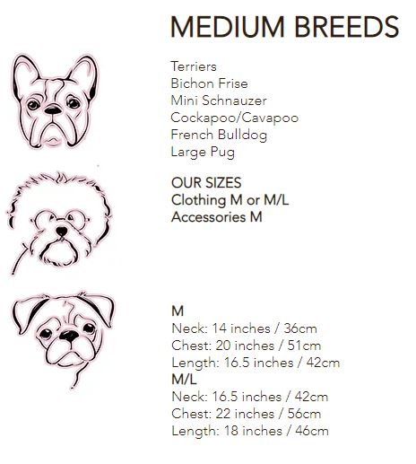 ** Red & Ginger's Frenchie and Schnauzer models wear a size Medium. Elsa wears a size Large **
